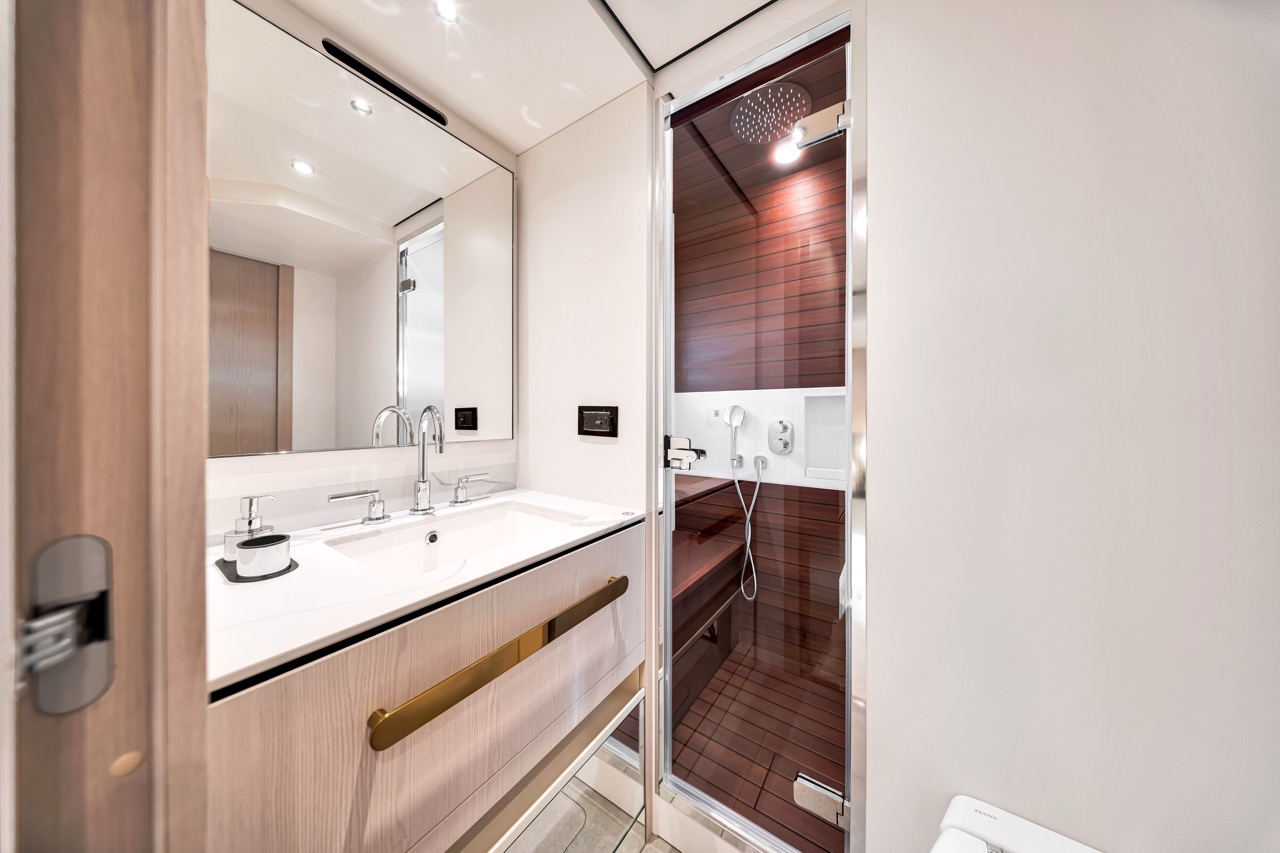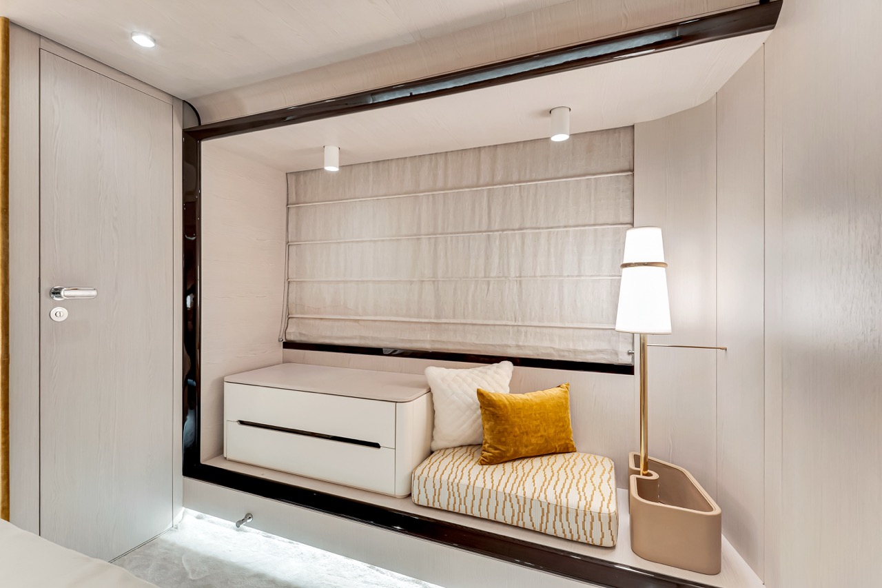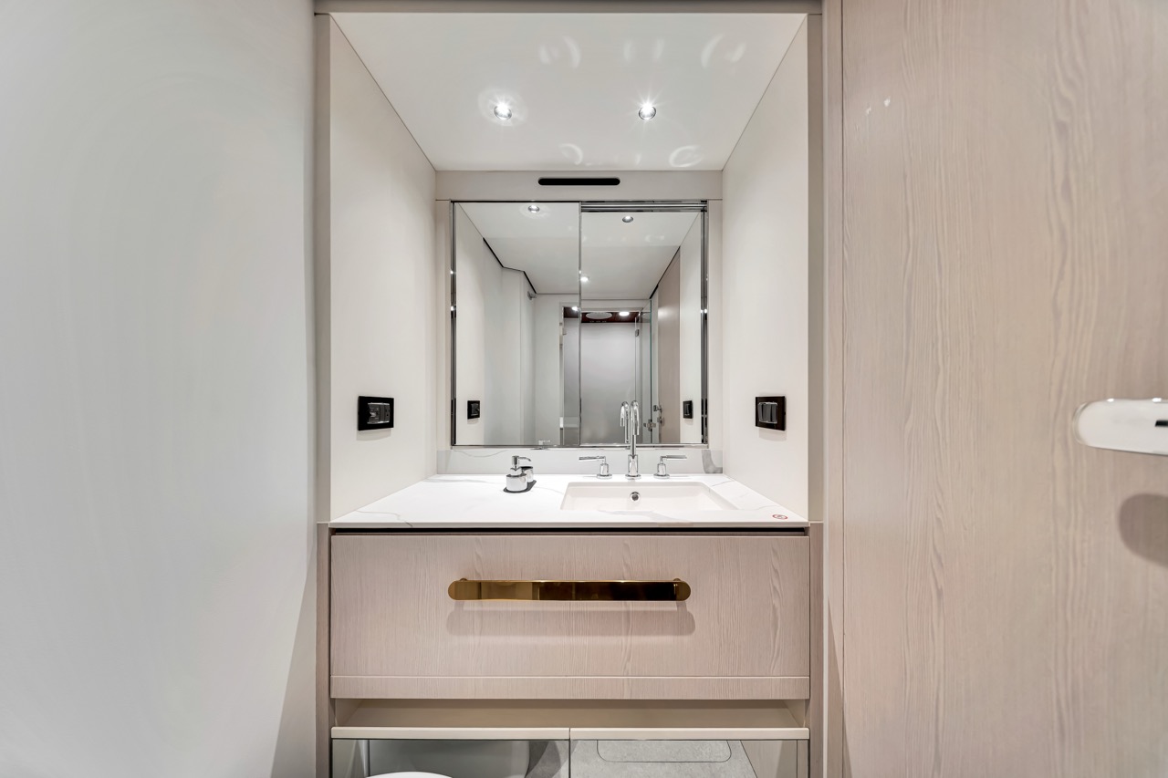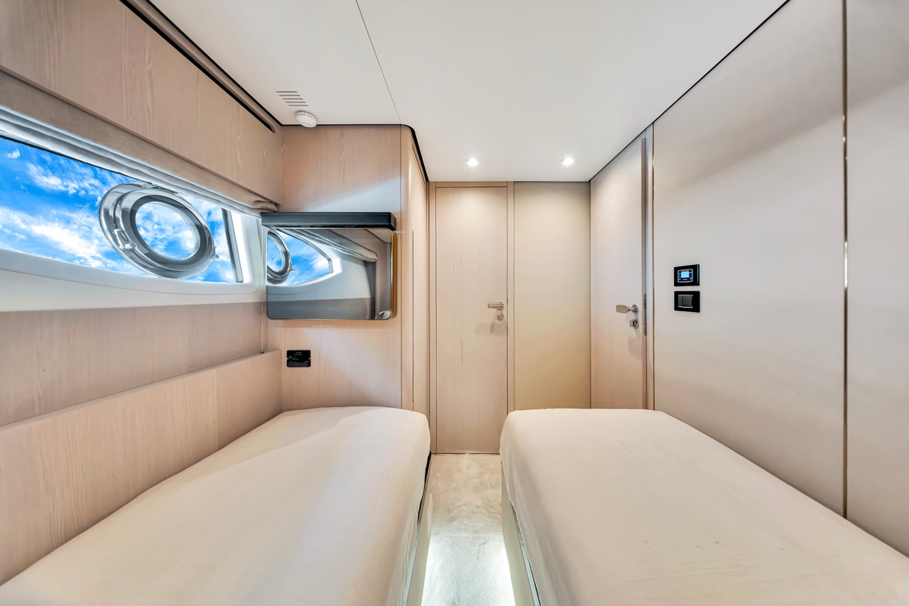 Aerial three-quarter view Flybridge lounge & helm Bow sunpads with skyline backdrop Aft cockpit dining area Salon with panoramic windows Dining area β€” interior perspective Galley β€” appliances & storage Primary stateroom β€” queen berth VIP stateroom β€” queen berth Guest cabin β€” layout detail Evening profile β€” warm lighting Cockpit overview β€” alternate angle Bridge helm electronics close-up Foredeck view toward skyline Helm electronics and controls Cabin corridor and storage Salon lounge β€” alternate angle Upper deck seating detail Aft deck dining setup Sunset cruise by the bay Wide view β€” flybridge lounge Side profile at dock β€” dusk ambience Night lighting β€” exterior ambience Salon media console and storage Companionway to cabins β€” interior detail Aft deck seating configuration Bridge seating β€” alternate angle Bow at anchor β€” downtown backdrop Aft cockpit β€” evening setup Detail lighting β€” interior trim Material textures β€” close-up Overhead lighting β€” lounge Daybed detail β€” upper deck Sunshade & seating β€” flybridge Transom access and cockpit Foredeck seating β€” cushions Side walkway β€” handrails Bridge seating cluster Upper deck dining setup Detail β€” upholstery & stitching Evening deck lighting