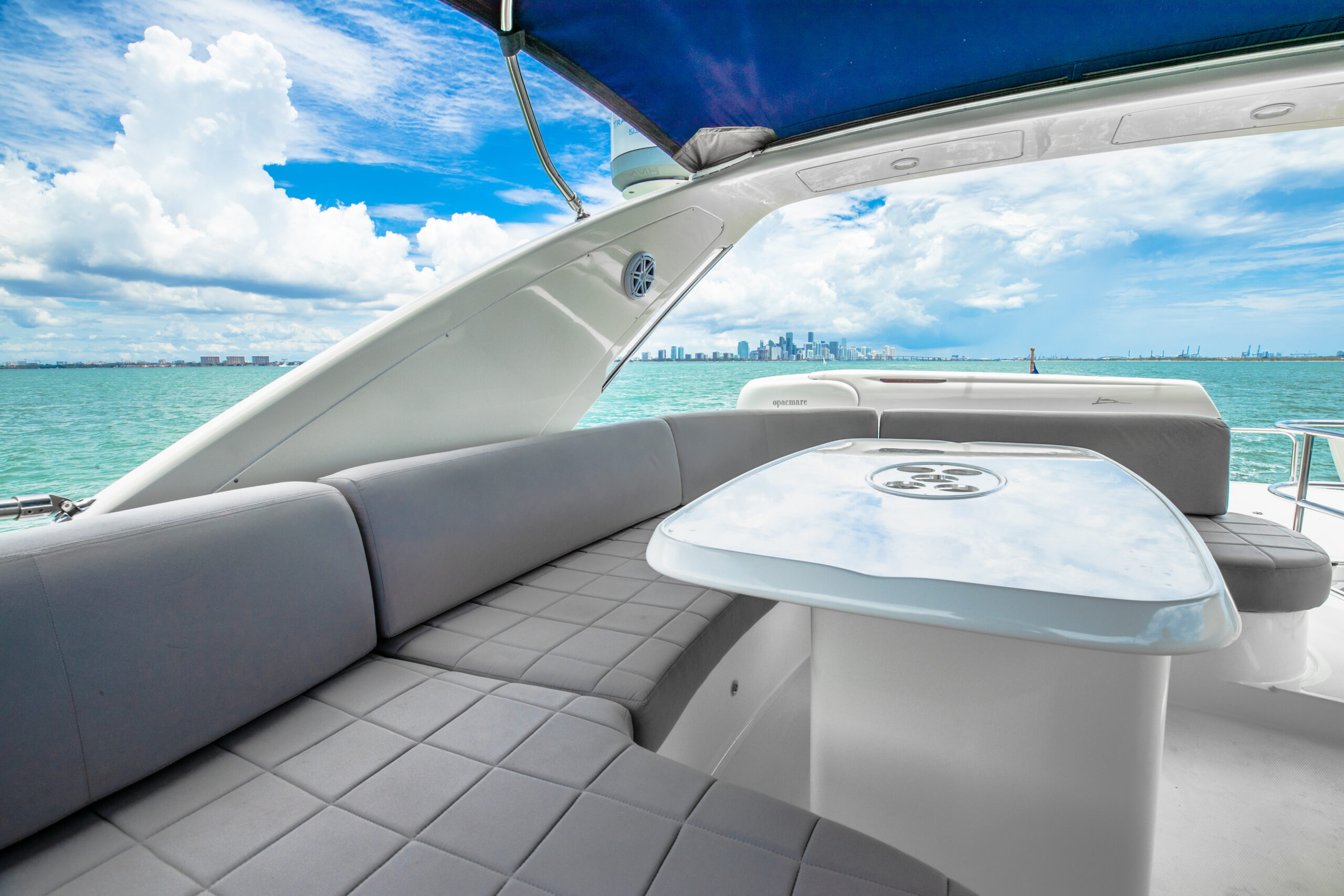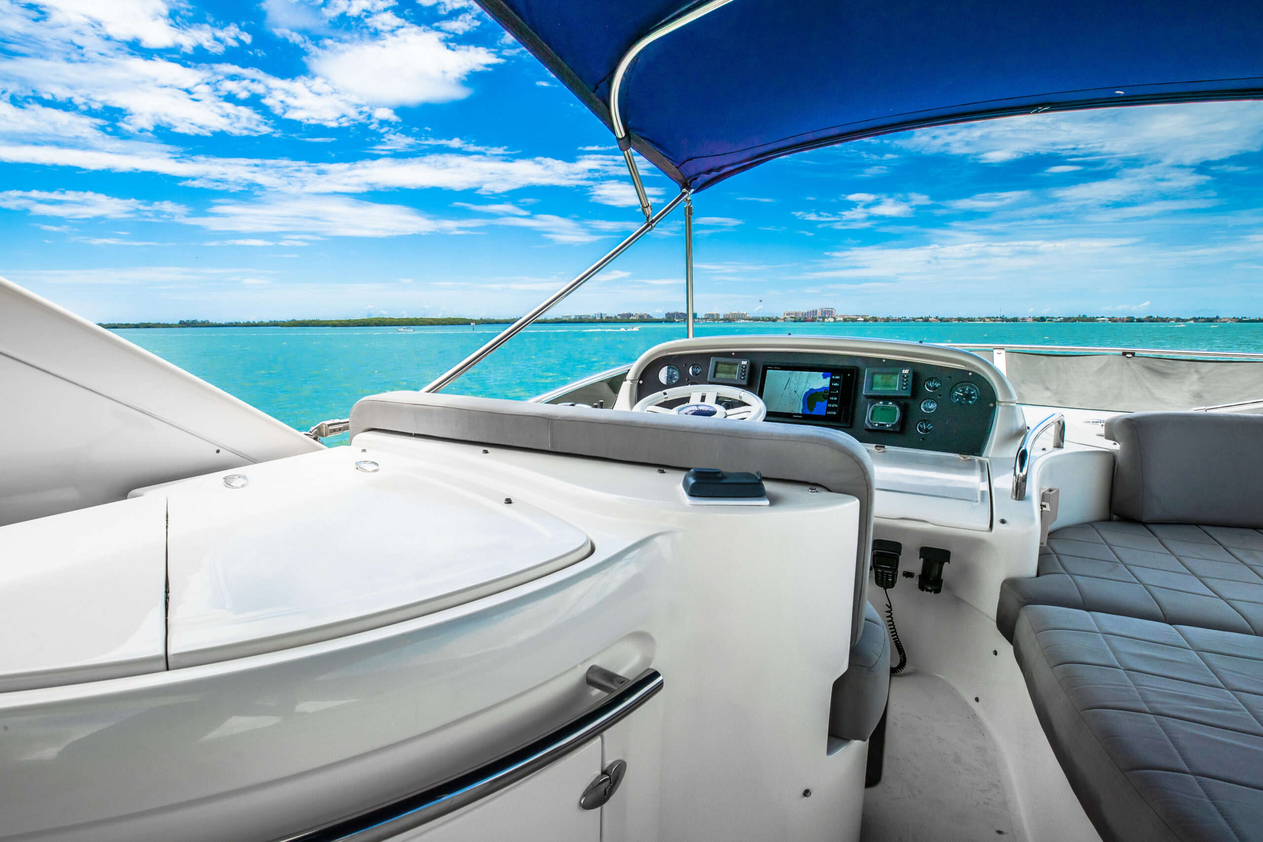 π₯οΈ Spacious 65-ft flybridge with large bow sunpads, open cockpit and premium salon β ideal for Biscayne Bay cruising, sandbar days & sunset tours.
