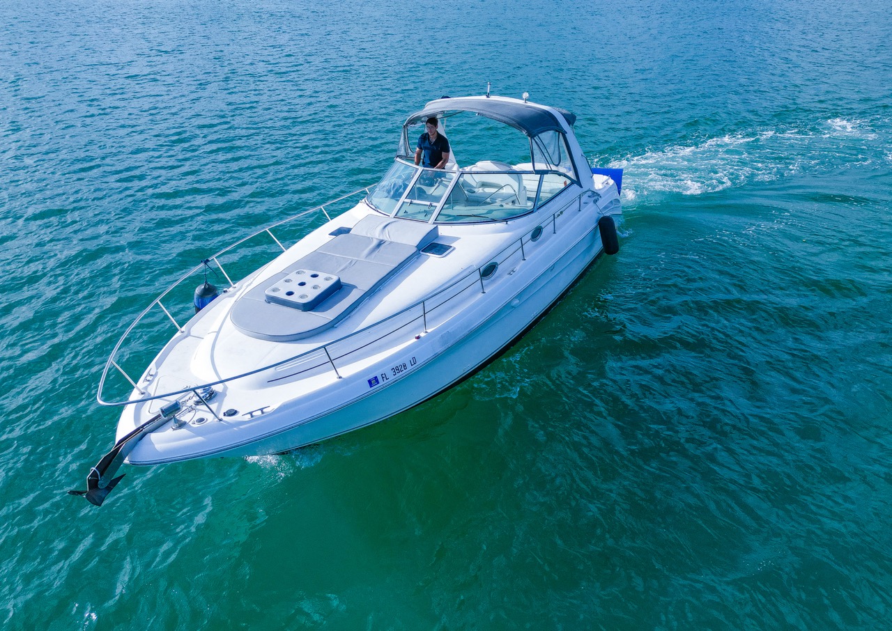Sea Ray 37' β€” hero exterior cruising near the Miami River