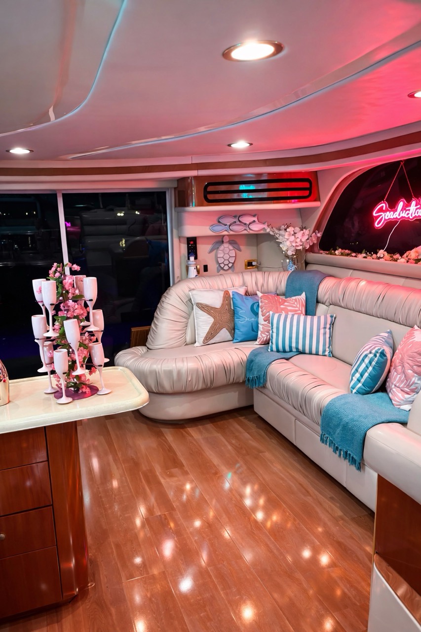 INCLUDED: 👨🏻✈️ Captain + Crew • 🧊 Cooler, Ice, Sodas, Water & Towels • 🏄🏼♀️ Floating Mat & Basic Water Toys. Up to 13 • Comfortable lounge & sunpads